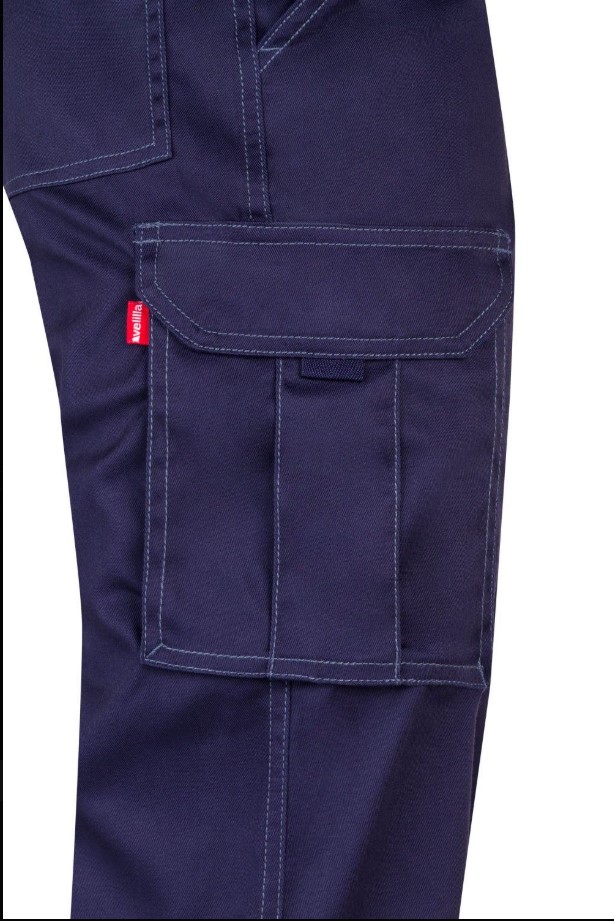 Seis bolsillos: 2 bolsillos franceses; 2 bolsillos de fuelle con doble fuelle central, tapeta, velcro y tiradores y 2 bolsillos traseros de arche con tapeta, velcro y tiradores